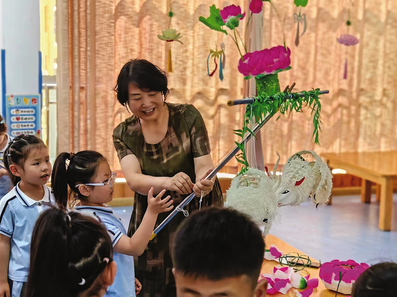 商州花燈傳承人雷美麗和孩子們一起制作花燈