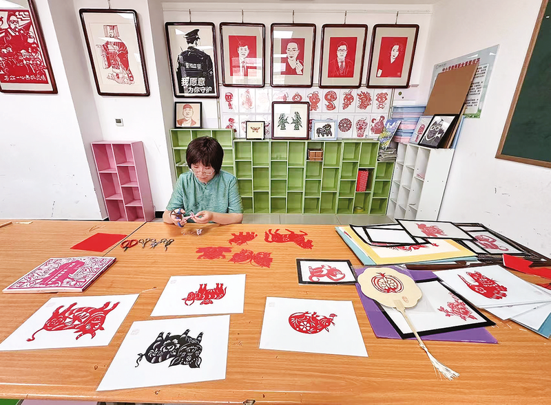 為了將商州剪紙傳承下去,王利娜通過創設學校剪紙社團,教授100多名學生學會了剪紙,她工作室墻上的塑封十二生肖就是孩子們的作品。“今年的學生特別優秀,很有繪畫天賦和創造力。尤其是一些男生,因為自主性強,很會創新。”