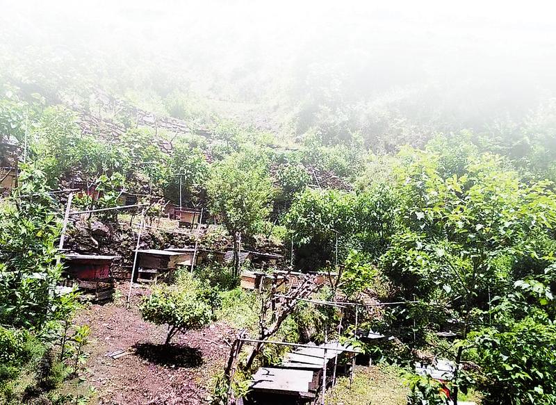 芳菲四月,燦爛的陽光照耀著雙河村兩岸花叢中飛舞的蜂群。三組養(yǎng)蜂人徐吉平顯得很興奮,他逢人就說:“我今年又增加了10箱蜂,雖然今年的春凍蜂群受了點損失,但我會努力養(yǎng)好蜂,相信來年肯定會有一個好收成。”筆者在徐吉平的養(yǎng)蜂場看到,屋檐下、山坡邊,一個個蜂箱擺放在綠草叢中,蜜蜂在林中穿梭飛舞,耳邊盡是嗡嗡聲。徐吉平揭開一個蜂箱,拎起蜂巢,只見上面密密麻麻爬滿了蜜蜂。徐吉平是當(dāng)?shù)赜忻闹腥A蜂養(yǎng)殖大戶,從他爺爺輩開始養(yǎng)蜂算起,到他這一代,養(yǎng)蜂經(jīng)驗已是相當(dāng)豐富。去年他家養(yǎng)了45箱中華蜂,為他帶來了可觀的收入。“我們祖祖輩輩都生長在這里,除了種地,養(yǎng)蜂優(yōu)勢最明顯。以前我養(yǎng)的土蜂一年收入只有1000多元。現(xiàn)在養(yǎng)蜂技術(shù)提高了,在大流蜜期10到15天就能取一次蜜,去年收入近3萬元。”徐吉平高興地說。