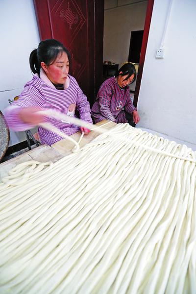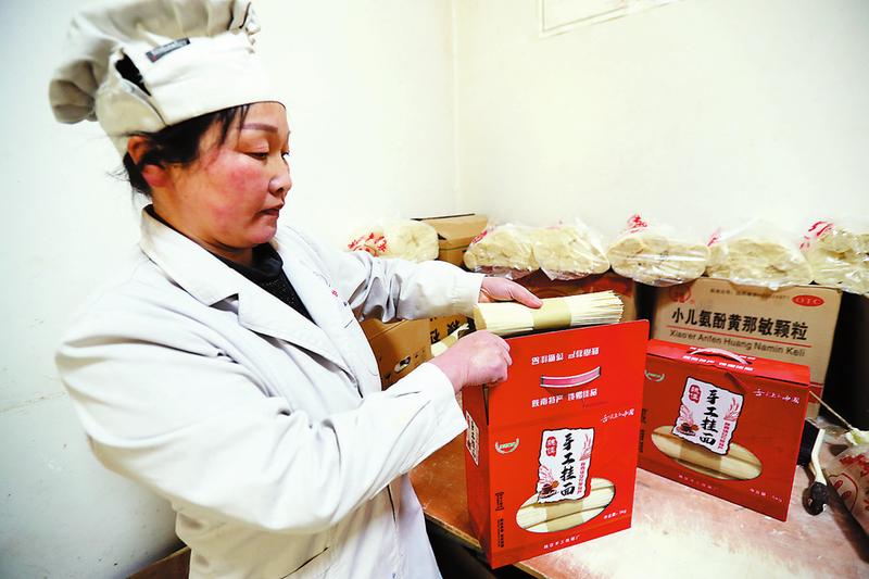 記者了解到,這兩戶人家不但掛面做得好,也十分注重品牌意識。他們將掛面分成不同類型進行包裝,再裝進統一制作的禮盒內推銷,不但提升了手工掛面的“顏值”,也有效提高了銷量。制作手工掛面工序復雜,他們每天十分辛苦,晚上往往只能休息四五個小時,但是制作傳統手工掛面是這兩戶人的主導產業,也是他們邁上小康生活的希望。