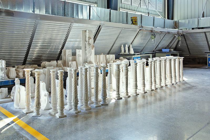近日,筆者來到鎮(zhèn)安縣新型材料科技開發(fā)產(chǎn)業(yè)園的漢白玉產(chǎn)業(yè)園陜西均健佳實(shí)業(yè)有限公司廠區(qū),只見一排排堆放整齊的大塊石材荒料映入眼簾。走進(jìn)車間,一塊塊石料正被先進(jìn)的設(shè)備加工成一個(gè)個(gè)精美的石材工藝品,各種廢料隨后又被加工成不同細(xì)度的細(xì)粉,用于生產(chǎn)各種化工填料。