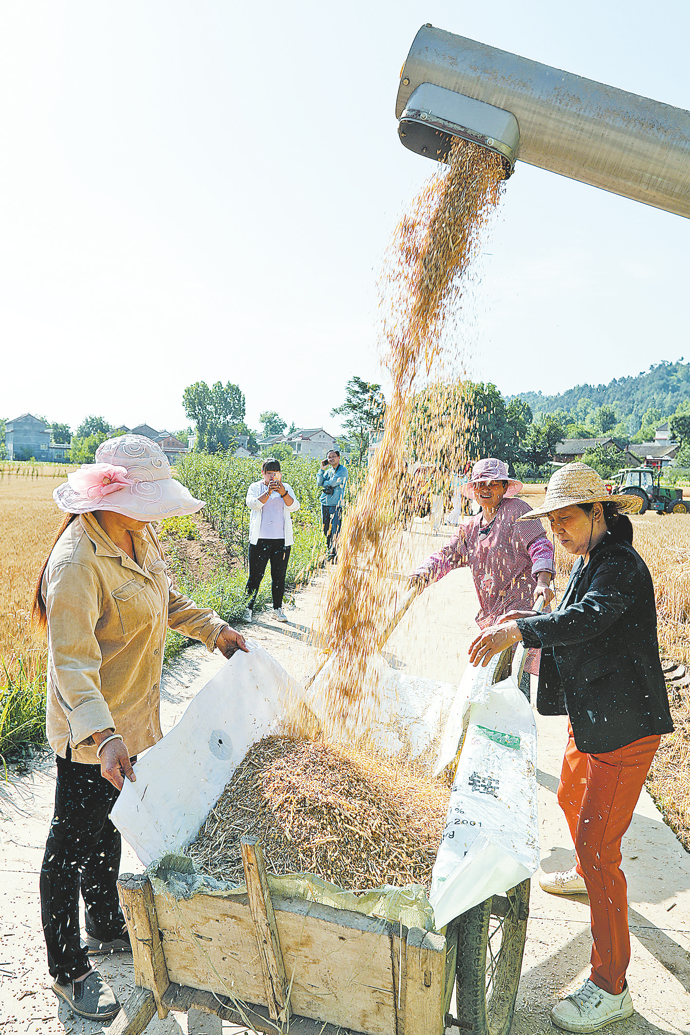 顆粒歸倉 粒粒皆辛苦,村民細心地把脫粒了的小麥收獲回家。