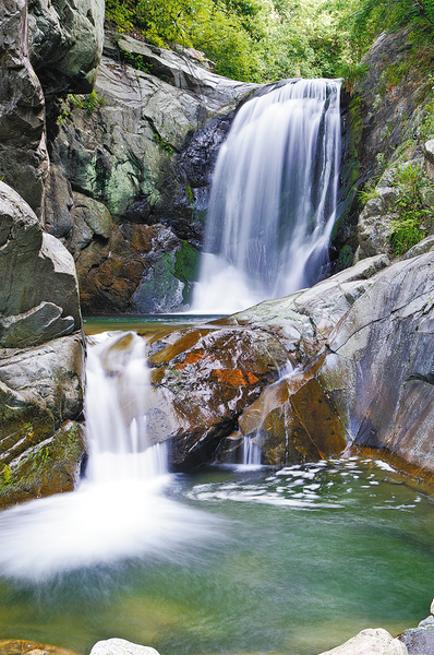 迷魂陣水秀,是鎮(zhèn)安河的源頭之一,有逸龍?zhí)丁⑹T瀑布、葫蘆瀑布等景觀,其中葫蘆瀑布最耐人尋味。葫蘆瀑布又稱吊罐潭,瀑布上大下小像個(gè)寶葫蘆,石潭口小肚大猶如農(nóng)家燒水的吊罐,故名吊罐潭,十分罕見(jiàn)。