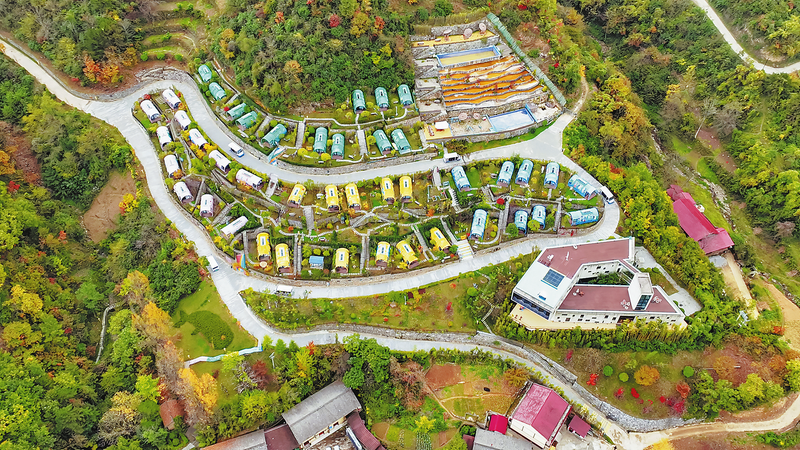 10月末,鎮安縣青銅關鎮豐收村迎來一批批游客前來賞秋游玩??罩续B瞰,村內道路阡陌縱橫,串聯起山腰上的特色民宿罐罐屋及山腳的農家小院,遠處青山綠樹換上彩色的盛裝,山下沿線田園、樹木、小院互相托襯,別有韻味。游人、觀光車穿梭其中,宛如人在畫中游。(本報通訊員 陸 波 攝)