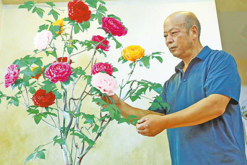 30多年來,憑借精湛的技藝和手藝人的職業操守,唐仁昭走遍了鎮安縣的村村寨寨、溝溝岔岔,完成蠟花、紙扎、繪畫、紙雕等傳統工藝美術作品近萬件。