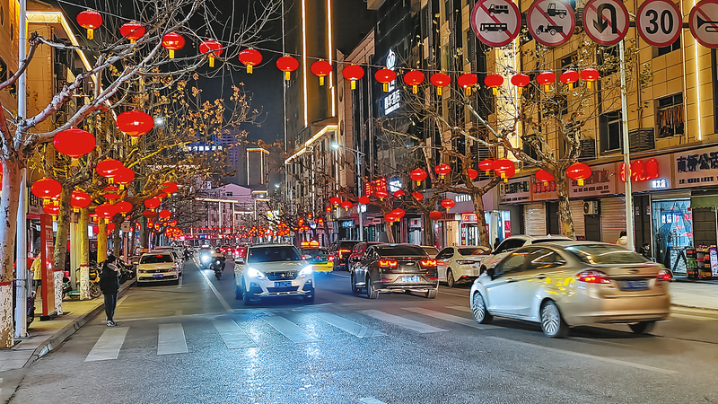 為優化夜經濟環境、營造喜慶歡樂的節日氛圍,連日來,柞水縣城的主街道掛起了紅燈籠,把街道裝扮得流光溢彩。一串串紅燈籠連成一片,行人穿梭其中,更顯喜慶味道,構成了一道亮麗的風景線。 (本報通訊員 余偏林 攝)