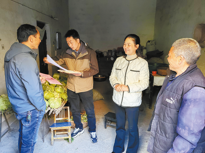 丁韜(中)入戶察看新合村重點監(jiān)測戶日常生活情況